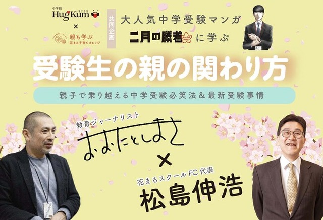 小学館の育児メディア「HugKum」では2月19日(日)にオンライン無料イベント「大人気中学受験マンガ『二月の勝者』に学ぶ 受験生の親の関わり方」を開催します。『二月の勝者』に登場するそれぞれの親子のあり方を例にとりながら、中学受験を迎える親御さんの心構えを探る講演会イベントです。