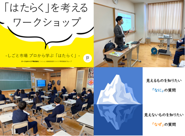 「しごと市場」は、さまざまな業界・職種からパーソルキャリアに転職した社員や、採用支援業務を通じて担当業界のプロフェッショナルとして顧客と向き合う社員が講師役となり、それぞれが経験してきた業界・職種についての紹介や、「なぜ今の会社や業界に転職をしたのか」「その職種のやりがいや大変さは何か」などを生徒と対話するワークショップです。