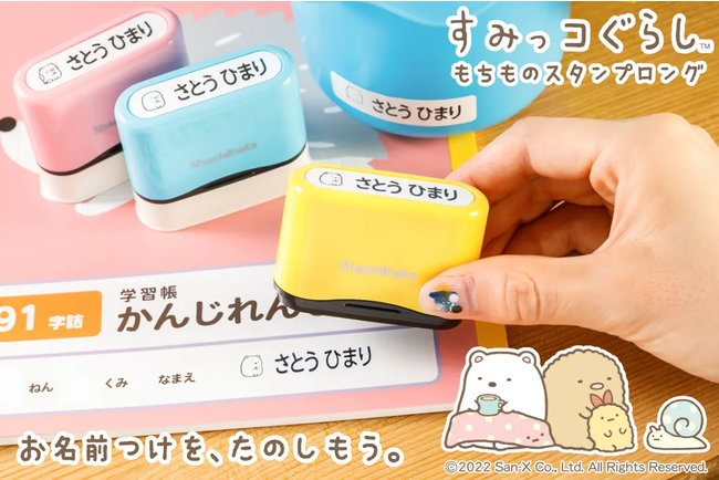 お名前のすみっこにいるキャラクターはどれも愛らしいものばかり。ポン!と自分のもちものに押すだけで、いつでもどこでも大好きなすみっコと一緒にいられる「すみっコぐらし もちものスタンプロング」。はんこというと事務的でお堅いイメージがありますが、 わたしたちはこれからも好きな人にはたまらないユニークな企画をつうじて、 ハンコに愛着を持つ人を増やしてまいります。