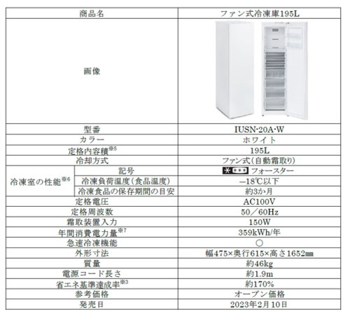 アイリスオーヤマ株式会社(本社:宮城県仙台市、代表取締役社長:大山 晃弘)は、スリムな本体が特長の前開き式冷凍庫の新たなラインアップとして、高い収納性と省エネを実現する「ファン式冷凍庫195L」を、2023年2月10日より全国のホームセンター、インターネットサイトを中心に順次、発売を開始します。