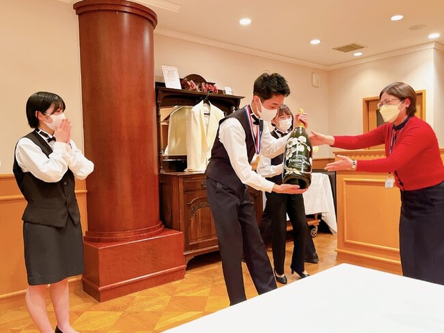 3.京都ホテル観光ブライダル専門学校では各学科、授業で学んだ知識や技術を実践的な形で発表する場を設けてます。今回はバーテンダーとして必要なカクテル技術や所作を発表する機会となりました。