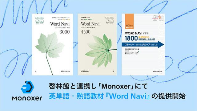 モノグサ株式会社(東京都千代田区 代表取締役:竹内孝太朗、畔柳圭佑)は記憶定着のための学習プラットフォーム「Monoxer(モノグサ)」が、株式会社新興出版社啓林館(大阪市天王寺区 代表取締役社長:佐藤 諭史)よりライセンスを受け、Monoxer上で英単語・熟語教材『Word Navi(ワードナビ)』を導入教室に向けて2023年度にリリースすることをお知らせいたします。