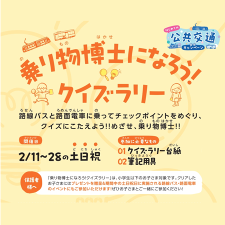 路線バスと路面電車に乗ってチェックポイントをめぐり、クイズにこたえよう!!