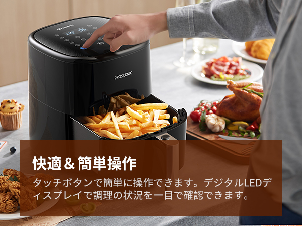 【組み合わせ&シェイクお知らせ機能】T22ノンフライヤーはProscenic独自技術により、予熱、調理、保温機能は同時に設置できます。食材を振り混ぜて、よりサクサクとした食感が楽しめます。