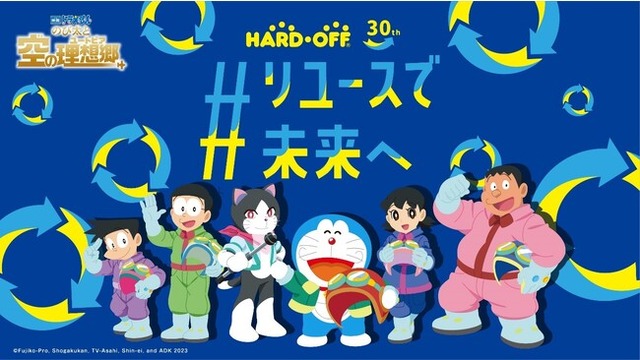 1993年2月11日に1号店が誕生し、ブランド誕生30周年を迎える、不要品の買い取り・販売を行うリユースショップ『ハードオフ』(株式会社ハードオフコーポレーション)は、2023年3月3日(金)に公開される『映画ドラえもん のび太と空の理想郷(ユートピア)』と『#リユースで未来へ』をテーマにしたキャンペーンを実施いたします。