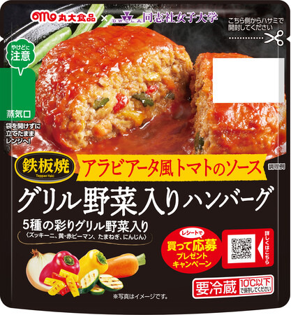同志社女子大学食物栄養科学科食物科学専攻では、2021年4月に「食品開発プロジェクト」を開設し、学修した知識の社会での実践の場として活動しています。当社は、学生の皆さんに商品の企画から生産、発売までの開発過程の面白さを感じていただき、商品化の達成感を味わってほしいという思いから、昨年度に引き続き同プロジェクトに参加いたしました。今年度は『女子大生が食べたくなるハンバーグ』をテーマとして提示し、同プロジェクトの参加学生と共に味付けやパッケージデザイン、販売促進方法などを検討し、商品化に至りました。