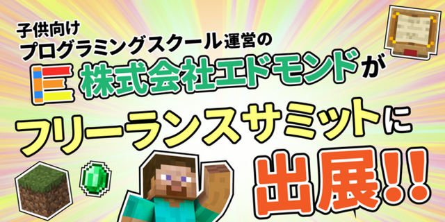 プログラミングを”マインクラフト”を用いて、”わかりやすく、実践的に”教える授業を開校するビジネスモデルを展開していくため、今回、3月4日(土)にエドモンドは国際フォーラムにて行われるフリーランスサミットに出展致します。
