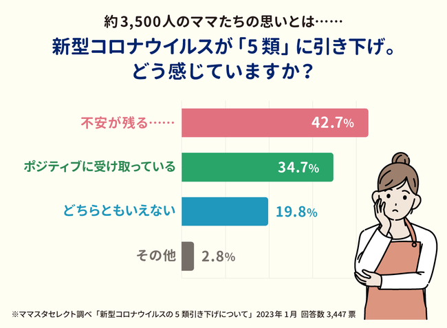 政府は新型コロナウイルスを季節性インフルエンザなどと同じ「5類」へ移行することを2023年1月に発表しました。その報道を受けて、ママたちは一体なにを思ったのかを聞いてみました。