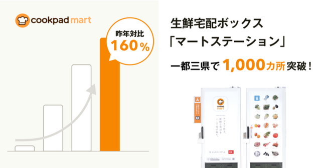 *1:生鮮食品EC「クックパッドマート」、集合住宅向けサービスを開始(2019年10月21日)https://prtimes.jp/main/html/rd/p/000000099.000027849.html