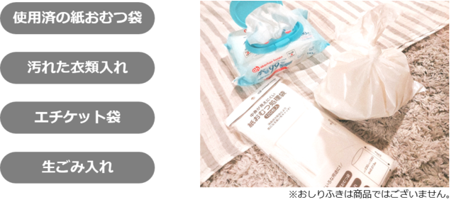 外出先ではおむつをすぐに廃棄することは困難であり、臭いのするおむつを持ち運ぶ状況が多々あります。本商品はそうした困りごとを解決し快適なおむつ替えをサポートします。気になる臭いを軽減するのはもちろん、中身が見えにくい半透明の袋によりおむつ処理袋以外の用途としてもご利用いただけます。
