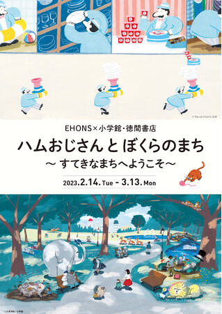 2023年2月14日(火)より、EHONS、丸善ジュンク堂書店のあわせて16店舗にて、大桃洋祐さんの人気絵本『ハムおじさん』(徳間書店 https://www.tokuma.jp/book/b591970.html)、『ぼくらのまちにおいでよ』(小学館 https://www.shogakukan.co.jp/books/09725083)のEHONSオリジナルグッズが発売されます。のんびりとしたおじさんの一日をユーモラスに描いた絵本の世界がより一層楽しめるグッズがたくさん登場します。