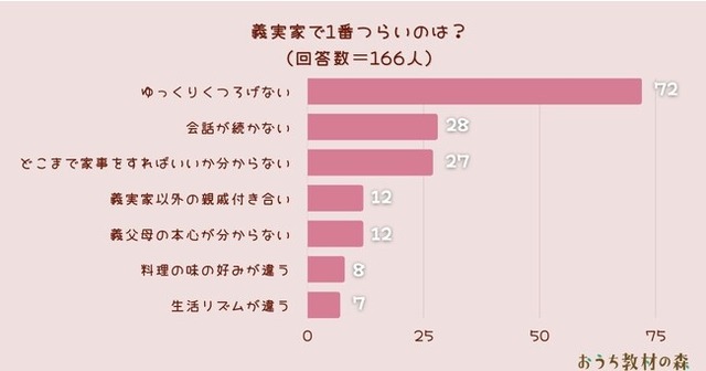 「義実家で1番つらいのは?」とアンケート調査した結果、1位は『ゆっくりくつろげない』でした。