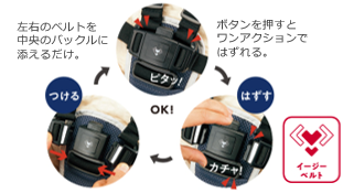 急いでいる時や、赤ちゃんの機嫌が悪い時のベルト装着も、マグネットの力でパッとくっつき、ワンアクションでパッと離れるのでストレスフリーです。