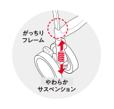 座面の下にソファーのスプリングのようなクッションを搭載。揺れに応じて座面がやさしく上下し振動を吸収します。