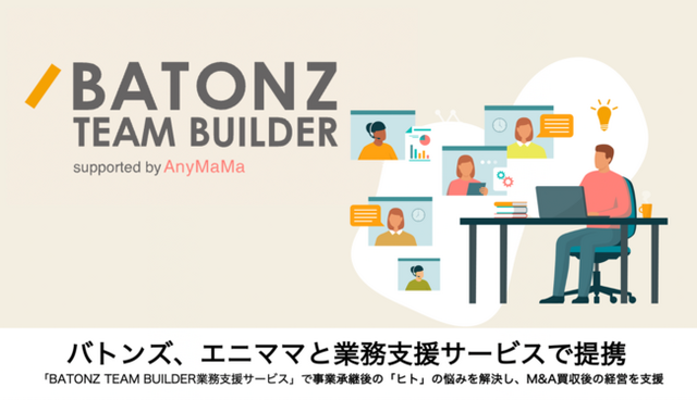 エニママとバトンズは、小規模事業者の買収後の経営支援を強化し、M&A後の事業成長をサポートするために共同で企画した「BATONZ TEAM BUILDER業務支援サービス」の提供を開始します。