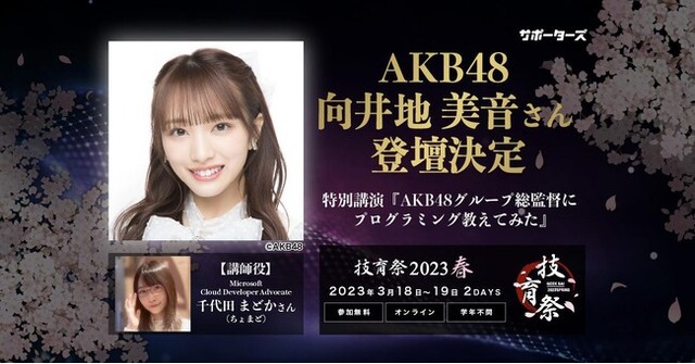 技育祭2023(春)に、AKB48 向井地美音さんの登壇が決定いたしました。