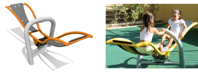 座っても寝そべっても乗れるシーソー。バネで真ん中に戻る仕組みなので不思議な浮遊感が楽しめます。相手とタイミングを合わせたり、子ども達の「自然な役割分担(社会性)」 が生まれます。