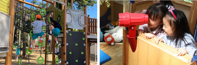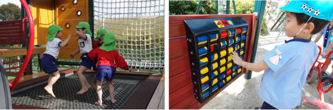1人で楽しむものから友だちと協力して挑戦する遊びまで、子ども達が遊具で遊び込むことで新しい物語が生まれます。