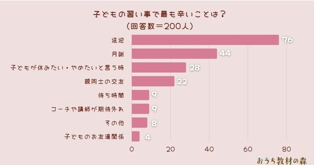 「子どもの習い事で最も辛いことは?」とアンケート調査した結果、1位は『送迎』でした。