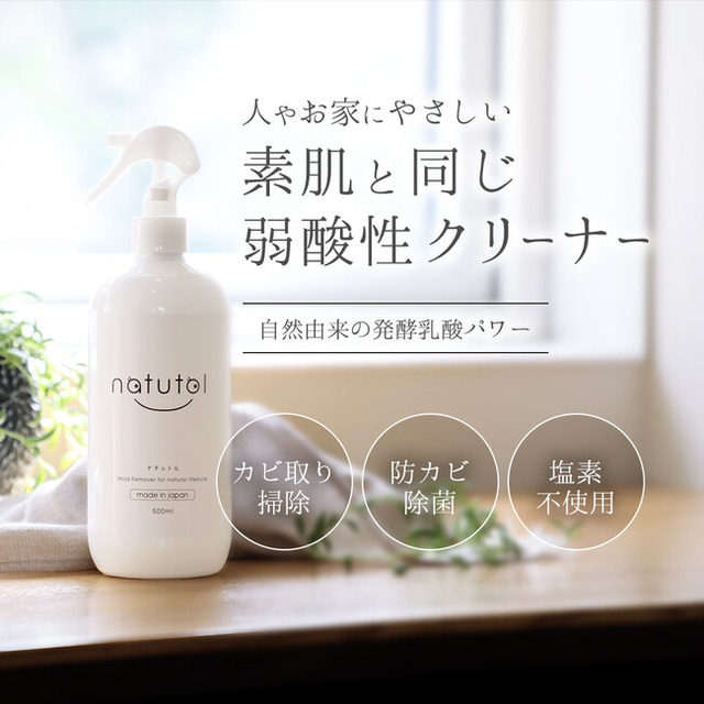 natutolのカビ取り成分は自然由来の発酵乳酸を使用し、素肌と同じ弱酸性。