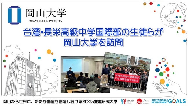 2023年2月7日、台湾・長栄高級中学国際部の生徒15人が修学旅行で岡山を訪れた関係で、岡山大学津島キャンパス(岡山市北区)を訪問しました。