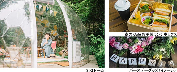 「SIKIドーム」とは、まるで屋外にいるかのような気分を味わえる360度透明のドームです。当プランでは、1日2組限定でドームを貸切利用でき、特別メニューのお食事とともにプライベート空間で季節の移ろいをゆっくり味わえます。