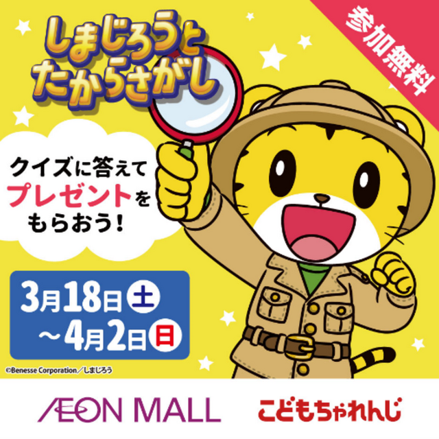 株式会社ベネッセコーポレーション(以下:ベネッセ)の幼児の教育・成長支援ブランド「こどもちゃれんじ」とイオンモール株式会社(以下:イオンモール)は、3月18日から、全国のイオンモールで『しまじろうとちょうせん★キャンペーン』を開催します。