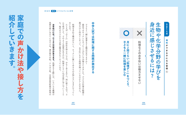 第1章では、子どもが学び全体に興味をもつための、家庭でできるアプローチ法を、第2章以降は、国語、算数、社会、理科と各教科への関心を耕す具体的なメソッドをお届けします。