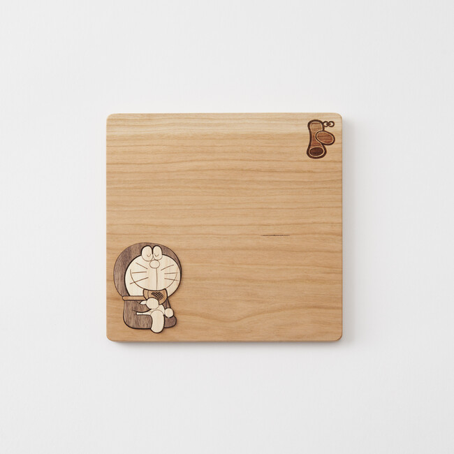 一点一点手作業で、木のパーツを組み合わせた木象嵌(もくぞうがん)で仕上げたドラえもんがナチュラルな空間によく似合います。