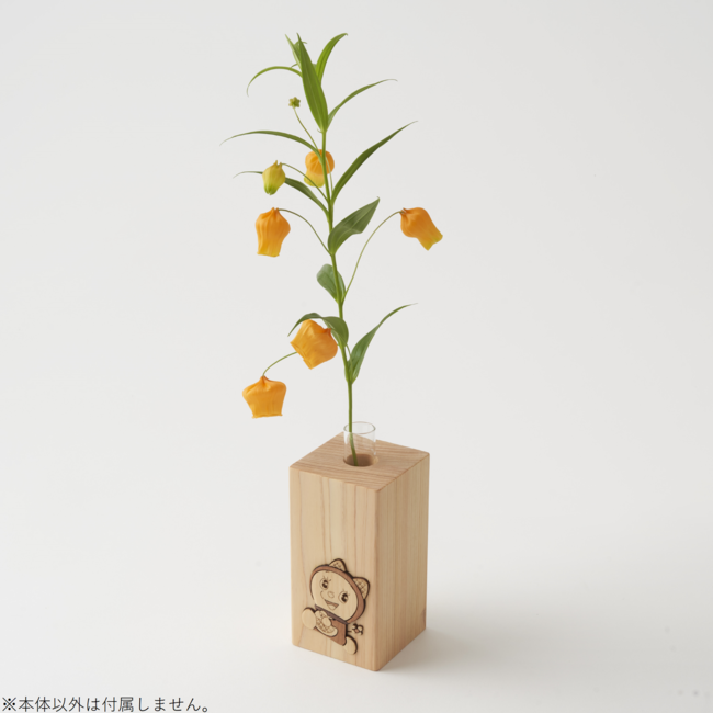 中に試験管のベースがセットされているので、お水を入れて生花を飾ることができます。木目の落ち着いた雰囲気は、ドライフラワーを飾っても素敵です。