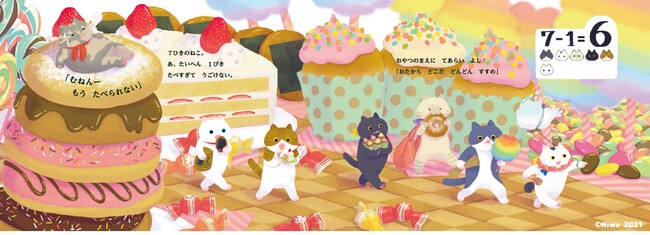 絵本『たすひくねこ』に登場するねこたちと一緒にさんすうを勉強することができる、