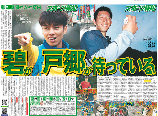 【入社案内】 今年もタブロイド8ページの「入社案内」を制作しました。昨年のサッカーW杯で活躍した田中碧選手、巨人・戸郷翔征投手、乃木坂46の賀喜遥香さんらからのメッセージを掲載しているほか、社員が各部局の仕事を紹介しています。希望者には郵送します。申込フォーム(https://forms.office.com/r/p2pchjcveD )からお申し込みください。採用ページでは社員の声や内定者座談会もアップしています。