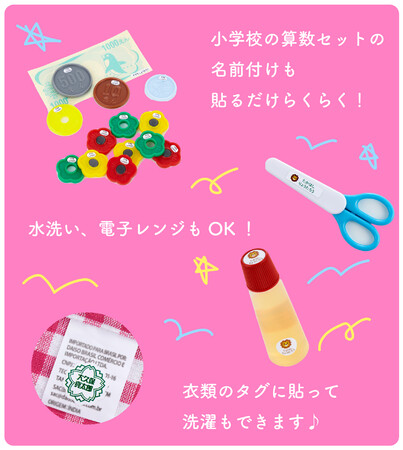 入学準備応援には欠かせない名前付け。大変な名前つけもお名前シールを貼るだけでできる頼もしいアイテムです。はがれにくく、防水タイプで水洗いも可。