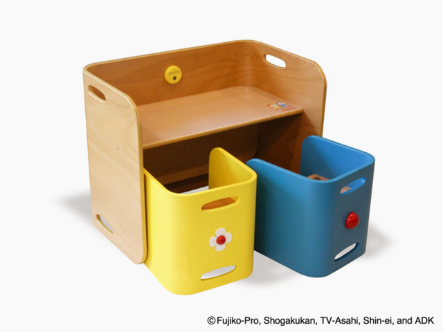 セット販売だけでなくコロコロチェア単品でも、「ドラえもん コロコロチェア(ドラえもん・ドラミ)」それぞれ各14,300円(税込)で販売しており、コロコロチェアは上下を入れ替えることで座面の高さが変更可能、生後6ヵ月から使用可能な14センチと2歳~7歳まで使用可能な18センチの2種類の高さでお子様の成長に寄り添い、長期間使える仕様となっており、コロコロチェア2つを組み合わせることでミニデスクセットとして使用することも可能です。