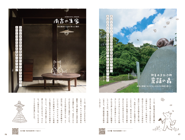 童話「ごんぎつね」の舞台である童話の森や、秋には300万本余りの彼岸花が咲き誇る⽮勝川、その他半田市の主要観光スポットや見どころイベントを新美南吉童話を切り口に紹介しています。新美南吉のファンに限らず、作品を多く知らなくてもガイド片手に巡ることで新美南吉のふるさとの風景を一日中楽しむことが出来ます。