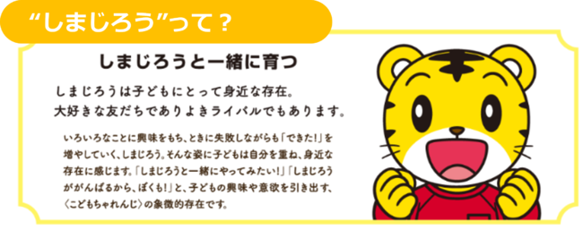 通信講座「こどもちゃれんじ」は1988年に開講して以来、今年で35周年を迎えます。小学校就学前の幼児教育を目的とした通信講座に加え、子育て情報の提供、幼児向け教育番組の放送や配信、映画、コンサート等を提供しています。その「こどもちゃれんじ」から生まれたキャラクター“しまじろう”は、子どもの認知度が90%以上、子育てをしている親世代の認知度が99% (共にベネッセ調べ※)と、高い認知と人気がある、「こどもちゃれんじ」の象徴的存在です。