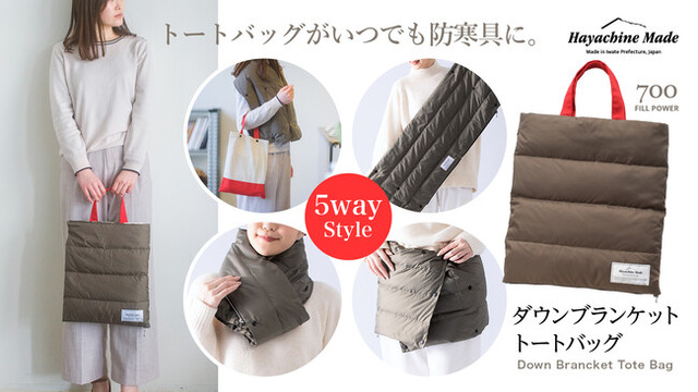 ダウンジャケット専門工場の有限会社クラスターは、オリジナルブランドHayachine Made より新シリーズ「ダウンブランケットトートバッグ」を発表。3月2日より「Makuake」サイトにて先行販売を開始しました。