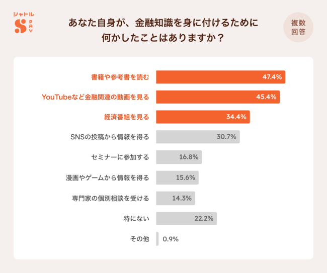 約8割が金融知識を得るために行動。上位は「書籍や参考書などを読む」「YouTubeなど金融関連の動画を見る」「経済番組を見る」