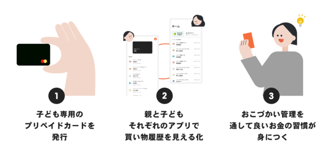 「シャトルペイ」は、子どもの自律を目指し、お金の使い方や管理を通して、親子で良いお金の習慣が身につく、子ども向けプリペイドカードです。世界9,000万店(※2)のMastercard加盟店で使える、子ども専用のカードを発行し、親と子、それぞれに最適化したアプリで、利用状況を管理できます。