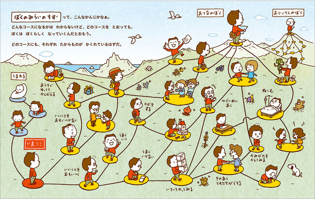 ものごとを俯瞰して見て、捉えることが得意なヨシタケさんならではの視点で展開する物語は、頭と心の整理整頓のヒントを与えてくれます。今年、絵本作家デビュー10周年を迎えるヨシタケさんの思考のエッセンスが詰まった、まったく新しい地図絵本の誕生です。