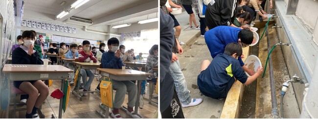 “陸養”プロジェクト実行委員会は、千葉県松戸市立馬橋小学校で昨年9月から5年生がヒラメの養殖にチャレンジしてきました。成育期間の終了に際し、これまでの活動を振り返りながらヒラメの最後について話し合う「議論」と、その結論を実行する「実行」の授業を2023年2月10日(金)、2月20日(月)に、同校にて開催いたしました。