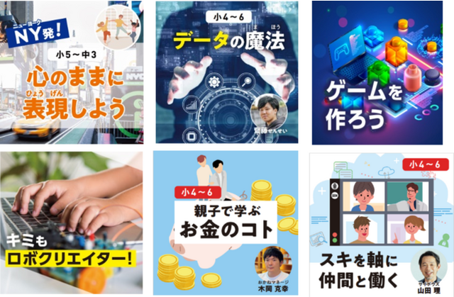 子ども向けの「サイエンス」「テクノロジー」「数・図形」「アート・表現」「グローバル」「よのなか」「生きる力」、親子で受講する「おやこ講座」、保護者向けの「ペアレンティング」「サクセスフルライフ」の10ジャンルで計70以上の講座を準備しており、今後も随時ラインナップを拡充していきます。