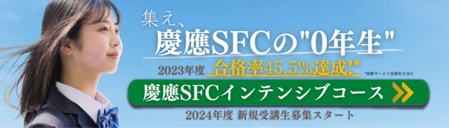 *2024年度の慶應SFCインテンシブコースは、4月入塾のみ・定員15名にて受講生受付を終了いたします。入塾をご検討されている生徒様・親御様は、お早めに無料説明会にお申込みいただけますようお願いいたします。
