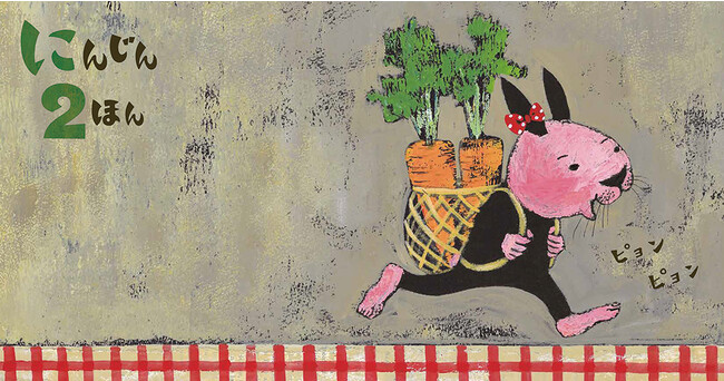 ねずみくんがいちご1こ、うさぎさんがにんじん2本……。みんなで材料を持ちよって、並べて数を数えたら、全部ミキサーに入れてミックスジュースを作ります。リズムが楽しい数字の絵本ができました。