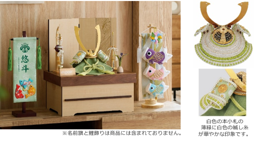 兜の飾り台がそのまま収納箱に。使用後は飾りをまとめて収納箱にしまえるので、コンパクトに保管でき、出し入れの手間が軽減できます。