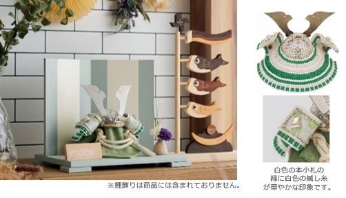 ■商 品 名 :兜収納飾り「黄緑縅し長鍬形本小札」(きみどりおどしながくわがたほんこざね)