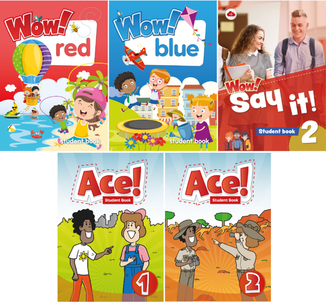 今回、年少対象の『Wow! red』、年長対象の『Wow! blue』、中学生対象の『Wow! Say it! 2』の3レベルを新たに制作、2023年4月からのネイティブ講師によるレッスンで導入します。