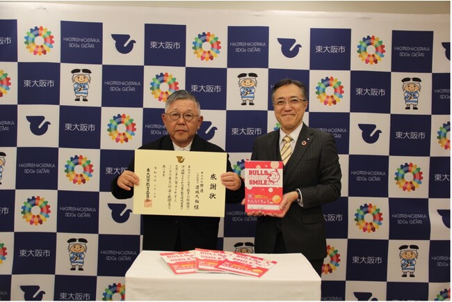 この連絡帳寄贈に対し、3月3日(金)に東大阪市役所にて市長感謝状贈呈式が執り行われました。