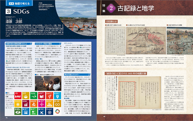 「きれいで見やすく、わかりやすい図録」というコンセプトはそのままに、学習指導要領、入試の傾向なども踏まえ内容を一新しました。「電子ペーパー」「SDGs」など、ニュースでよく取り上げられるトピックも扱っています。「古記録と地学」「恐竜はどんな生物か?」など、読んで楽しく、科学への興味の深まる特集記事も。高校生の日常学習から受験対策、大人の学び直しまで幅広く使える、2023年最新の理科図録です。