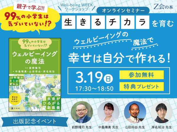 株式会社増進会ホールディングス(Z会グループ)のグループ会社、株式会社Z会ソリューションズは、「THE WELL-BEING WEEK」イベント内の特別ワークショップとして、小学生の親子を対象とした「ウェルビーイングの魔法で幸せは自分で作れる!」(参加無料)と題したオンラインセミナーを2023年3月19日に開催します。